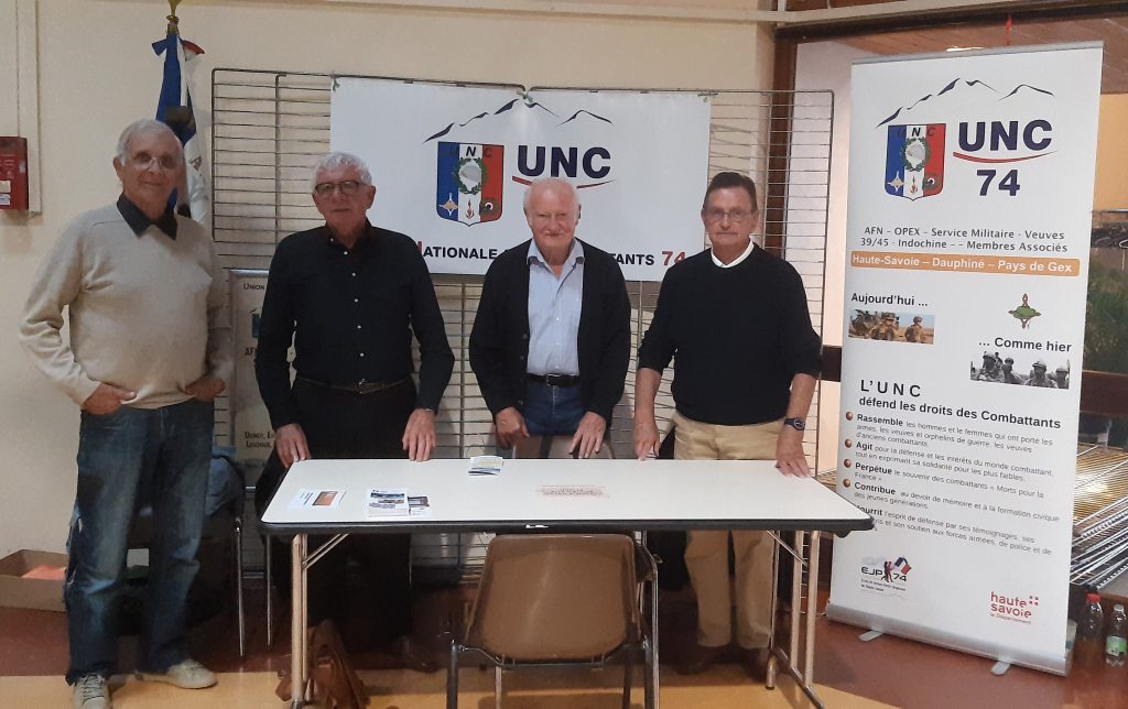L’association présidée par Michel BRUYERE était de nouveau présente lors de la traditionnelle journée des associations de Saint-Jorioz le 14 septembre 2025 à l’espace Augustine Coutin. Notre association locale très bien implantée, qui a pignon sur rue dans le secteur, représentait les adhérents de Sévrier, Saint Eustache, La chapelle-Saint-Maurice, Leschaux, Entrevernes, Duingt et Saint-Jorioz. Le maire a salué l’ensemble des exposants, et en particulier l’UNC pour son rôle social. Les anciens d’AFN étaient là, mais l’association s’ouvre de plus en plus, comptant depuis peu un nouvel adhérent Soldat de France et un nouvel OPEX. Lors du forum, plusieurs hommes ayant fait leur service militaire se sont renseignés, découvrant qu’ils pouvaient entrer dans le mouvement. Une journée utile et rentable, qui maintient l’UNC à l’affiche du monde associatif et augure d’un renouvellement des effectifs.