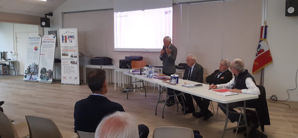 29 associations étaient représentées sur 36, avec 48 participants, soit un taux de présence record ! Le bureau a présenté un point de situation de l’UNC 74, dévoilé son plan d’action pour l’avenir : « garder son rang, combattre les dissolutions, améliorer l’image, fidéliser, recruter, s ’adapter », suivi d’un échange sur plusieurs sujets avec les associations, discussions poursuivies pendant le repas. Les associations absentes sont invitées à s’inscrire à une des trois prochaines réunions de secteur