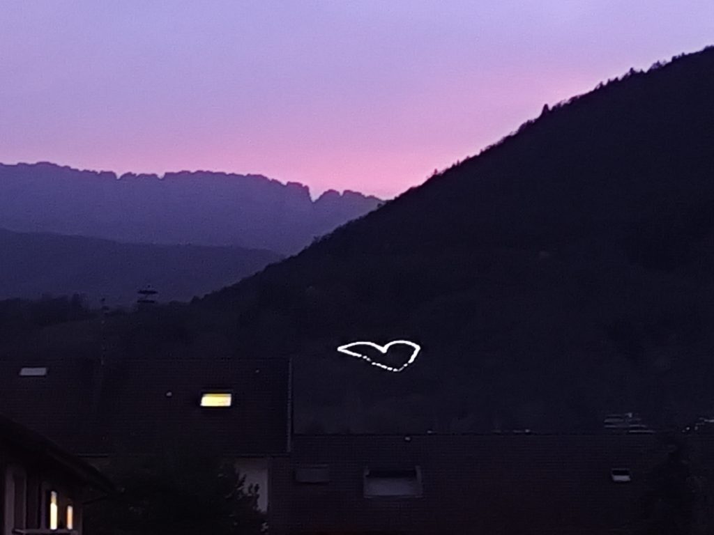 Sur la colline d’Annecy-le-Vieux, le cœur lumineux géant a brillé toute la nuit pour rendre hommage aux 130 victimes de la nuit tragique du 13 novembre 2015. L’UNC 74 et le Souvenir Français 74 sont honorés d’avoir intégralement financé le matériel nécessaire pour la mise en place du dispositif imaginé par la famille de Vincent en partenariat avec l’ONaCVG de Haute-Savoie.