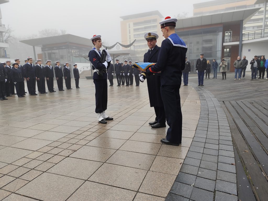 C’est le capitaine de vaisseau Pierre Pasco commandant la frégate de défense aérienne Forbin qui a présidé la cérémonie de remise du fanion de la Préparation Militaire Marine d’Annecy « Lieutenant de vaisseau Antoine Laurent ». Cette cérémonie s’est déroulée le samedi 13 décembre sur le parvis de l’hôtel de ville de Seynod. Marc Besson président de l’UNC Semnoz et Jacky Haudiquert président délégué de l’UNC 74 étaient présents.