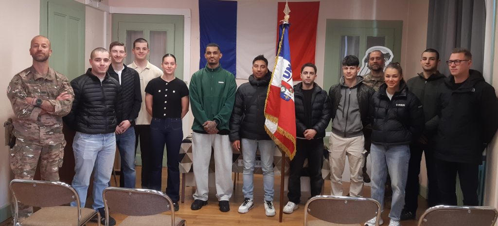 Le 7 avril 2026 l’UNC 74 a participé avec son drapeau à la cérémonie de signature mensuelle de contrats des jeunes engagés de Haute-Savoie, au centre d’information et de recrutement des forces armées (CIRFA) d’Annecy, sous le commandement du major Bariot. 13 jeunes de Bonneville, Evian, Thonon, Cluses, Peron, Annecy, Bons en Chablais et Marignier se sont engagé à la brigade des sapeurs-pompiers de Paris, au 14e régiment d’infanterie et de logistique parachutiste (Toulouse), au 92e régiment d’infanterie (Clermont-Ferrand), au 53e régiment de transmissions (Lunéville), au 7e régiment d’instruction et d’intervention de la sécurité civile (Brignoles), au 4e régiment de chasseurs (Gap), au 27e bataillon de chasseurs alpins (Cran-Gevrier), au 1er régiment d’infanterie de marine (Angoulème), au 1er régiment d’artillerie (Bourogne) et au 21e régiment d’infanterie de marine. Tous partaient avec un enthousiasme qui nous rappelait nos jeunes années. Nous leur avons souhaité courage, humilité et persévérance, en présence de leur famille que nous avons rassuré. Félicitation aux recruteurs du CIRFA 74 pour cette nouvelle performance et merci pour cette cure de jouvence.