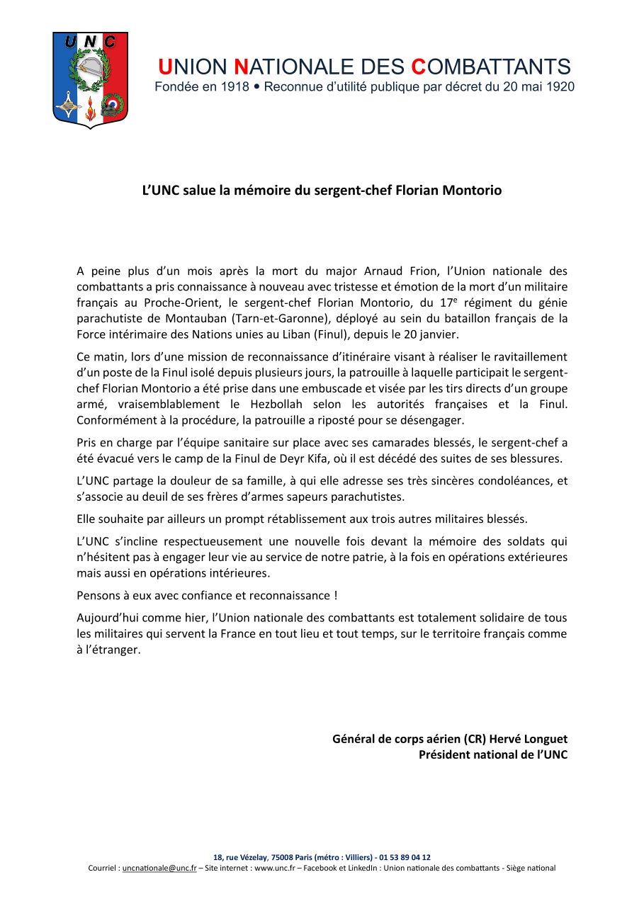 ActualitésHommageOPEX Mort d’un soldat Français au Liban 18 avril 2026 uncannecy UNC hommage SCH MontorioTélécharger