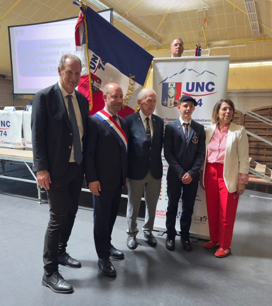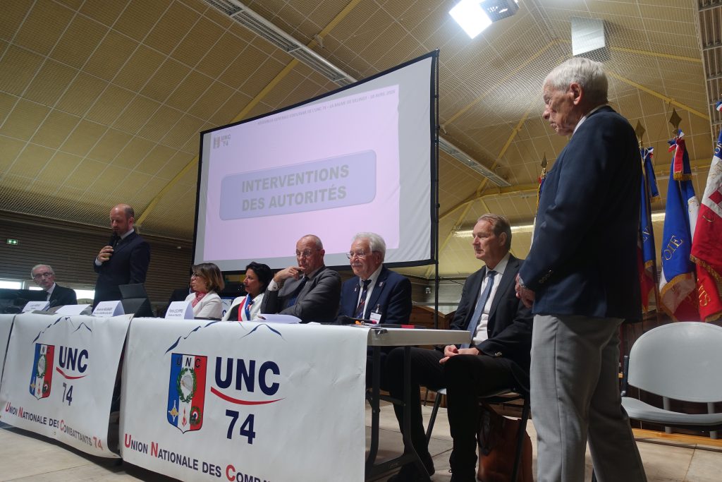 L’assemblée générale statutaire de l’UNC 74 a eu lieu le 18 avril 2026 à la Balme de Sillingy dans la salle omnisport Georges Daviet mise à disposition par la municipalité. 190 personnes s’étaient réunies représentant 76 associations (sur les 112 affiliées à l’UNC 74), accueillies par Maurice Galuchot président de l’UNC La Balme de Sillingy Mésigny Sallenôves. L’AG présidée par Jean-Paul Ducimetière, animée par Georges Cretin, Michel Guédon, Eric Dupont et Jacky Haudiquert a comporté le vote pour le renouvellement du tiers -sortant du conseil d’administration : élus sont Gérald Bolliger, Alain Daguzan, Jean-Paul Ducimetière, Grégory Dupuy, Gérard Grandjaquot, Jacques Mulard, Nicole Vesin, Robert Verne. Des distinctions ont été remises : Mérite UNC – grand-or à Anne-Marie Bornens et Maurice Galuchot, Mérite UNC – argent à Isabelle Beaussard, Karoline Dunand- Chatellet, Djebel – or à René Billiard, Djebel – diamant à Albert Perret, Daniel Berthier, Georges Carraux, Sylvain Crozet, Charles Morgantini et enfin la médaille du travail – 30 ans à Isabelle Beaussard. Les autorités présentes se sont exprimées : Séverine Mugnier maire de la Balme de Sillingy, Valérie Gonzo-Massol conseillère départementale, Loïc Hervé sénateur de Haute Savoie et vice-président du Sénat, Patrick Lecuppre directeur départemental de l’ONaCVG. L’assemblée, ses drapeaux et les autorités ainsi que deux cadets UNC se sont rendus au monument au mort de la commune pour une cérémonie de remise de gerbe. A l’issue, un déjeuner a été servi par l’auberge du Pelloux.