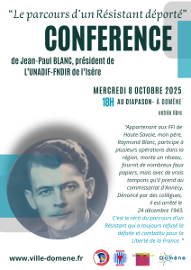 « Tous les Évènements Cet évènement est passé. Conférence sur Raymond BLANC, résistant Haut-Savoyard 8 octobre à 18 h 00 min - 20 h 00 min « conférences sur les parachutistes français en Indochine 1944-1954 Sidi Brahim » Ajouter au calendrier Google Agenda iCalendar Outlook 365 Outlook Live Détails Date : 8 octobre Heure : 18 h 00 min - 20 h 00 min